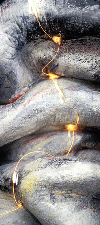 Fibra ceramica, legno, piombo, nichelcromo incandescente, trasformatore elettrico e acrilico