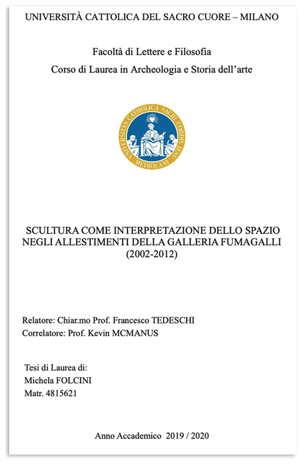 Dal 2015 gestisce uno spazio espositivo indipendente all’interno di una sua installazione permanente L’alcòva d’acciaio di Umberto Cavenago, nascosta in un bosco delle Langhe.