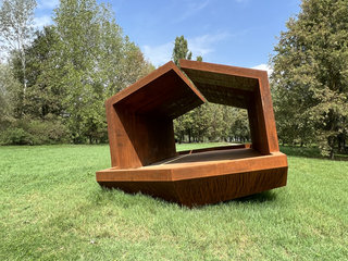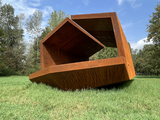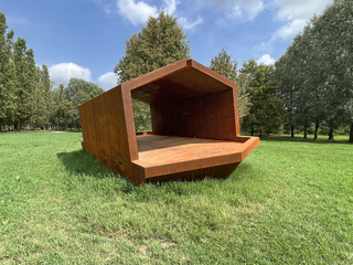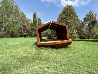 In the scorching month of July, the artwork is positioned on-site, awaiting attachment to the reinforced concrete pedestals specifically constructed in anticipation of the Po River floods. In the artist's design, it is crucial for the artwork to be anchored to the mainland; the artist has collaborated with specialized technicians appointed by the Municipality of Suzzara to ensure the correct procedures for doing so.